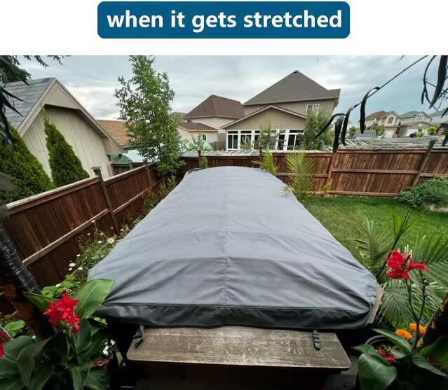 MATERIALS - outer material is Oxford Cloth (600D), and the backside liner is PVC, which is same as the material on spa thermal cover. The domed frame is made with fiberglass reinforced round rod and fiberglass reinforced square tube.